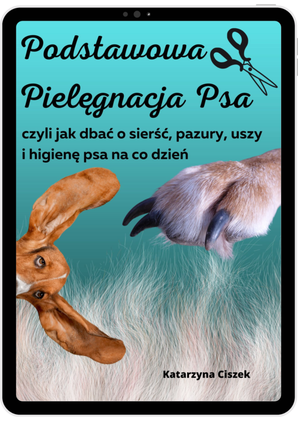Poradnik w formie e-booka „Podstawowa Pielęgnacja Psa, czyli jak dbać o sierść, pazury, uszy i higienę psa na co dzień”.